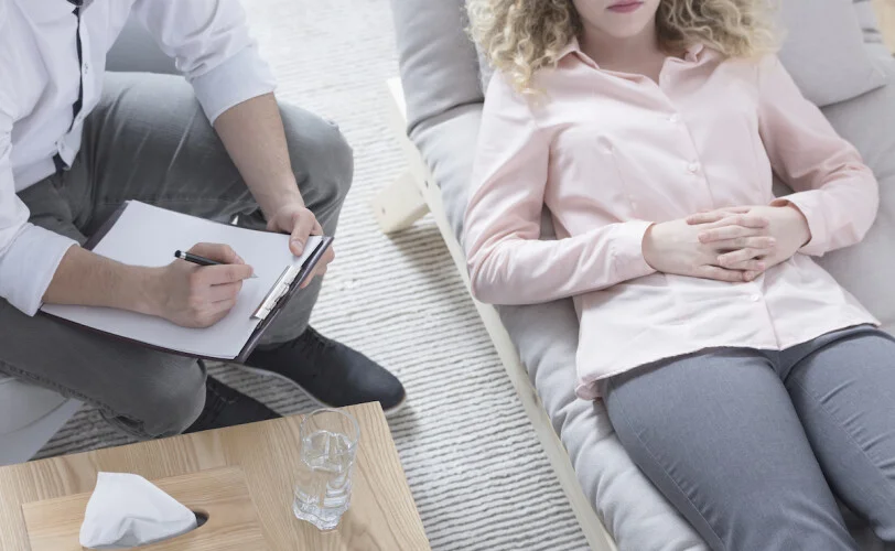 Female lying in couch during hypnotherapy session